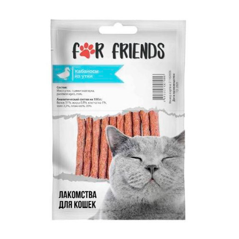 Лакомство For Friends для кошек Кабаносы из утки, 50гр — это натуральное лакомство, которое подойдет для любой породы кошек старше 3-х месяцев. Содержит питательные вещестра и витамины. Разработан с учетом полноценного рациона кошек.
